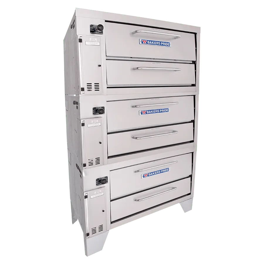 The Bakers PrideĀ® model 253 standard-depth triple-stacked gas pizza oven is designed for all your high-volume baking needs. This triple-stacked oven features three Cordierite decks with 8" deck heights and independently controlled top and bottom heat dampers for perfectly balanced results. This 48" wide model is constructed with heavy-duty angle iron frame, which is fully welded to allow for stacking. The oven exterior is heavy-duty stainless steel and fully insulated for cooler outer temperatures and consistent interior temperatures.